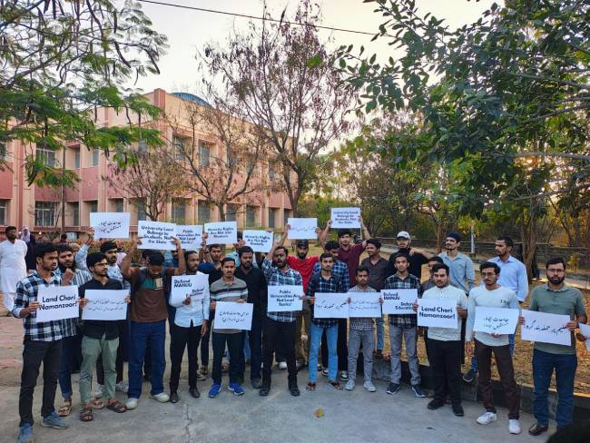 గచ్చిబౌలి లోని మౌలానా ఆజాద్ నేషనల్ ఉర్దూ యూనివర్సిటీకి ఇచ్చిన భూముల్లో 50 ఎకరాలను వెనక్కు తీసుకునేందుకు తెలంగాణ రాష్ట్ర ప్రభుత్వం ఇచ్చిన నోటీసులపై బుధవారం విద్యార్థులు ఆందోళన చేపట్టారు. ఉర్దూ యూనివర్సిటీ ఆవరణలో ఉన్న సెంట్రల్ లైబ్రరీ నుంచి ప్రధాన గేట్ వద్దకు ర్యాలీగా తరలివచ్చారు. ఉర్దూ యూనివర్సిటీ ప్రభుత్వ జాగీరు కాదని, యూనివర్సిటీ భూమిపై కన్నేస్తే ఖబర్దార్ అంటూ నినాదాలు చేశారు.