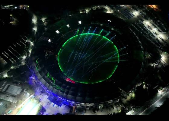సింగరేణి ఆర్ఆర్ జట్టు తరుఫున సీఎం రేవంత్ రెడ్డి.. అపర్ణ మెస్సీ ఆల్ స్టార్స్ నుంచి ఫుట్బాల్ దిగ్గజం లియోనాల్ మెస్సీ గ్రౌండ్లోకి దిగడం అభిమానులను ఉర్రూతలూగించింది. శనివారం రాత్రి 8 గంటలకు ప్రారంభమైన ఈ ఫుట్ బాల్ మ్యాచ్లో.. ప్రారంభంలోనే సింగరేణి ఆర్ఆర్ జట్టు వరుసగా రెండు గోల్స్ సాధించింది. మ్యాచ్ 18వ నిమిషంలో గ్రౌండ్లో అడుగుపెట్టిన రేవంత్ రెడ్డి వచ్చీ రావటంతోనే గోల్ కొట్టి అలరించారు. దీంతో అభిమానుల కేరింతలతో ఉప్పల్ స్టేడియం మార్మోగింది.