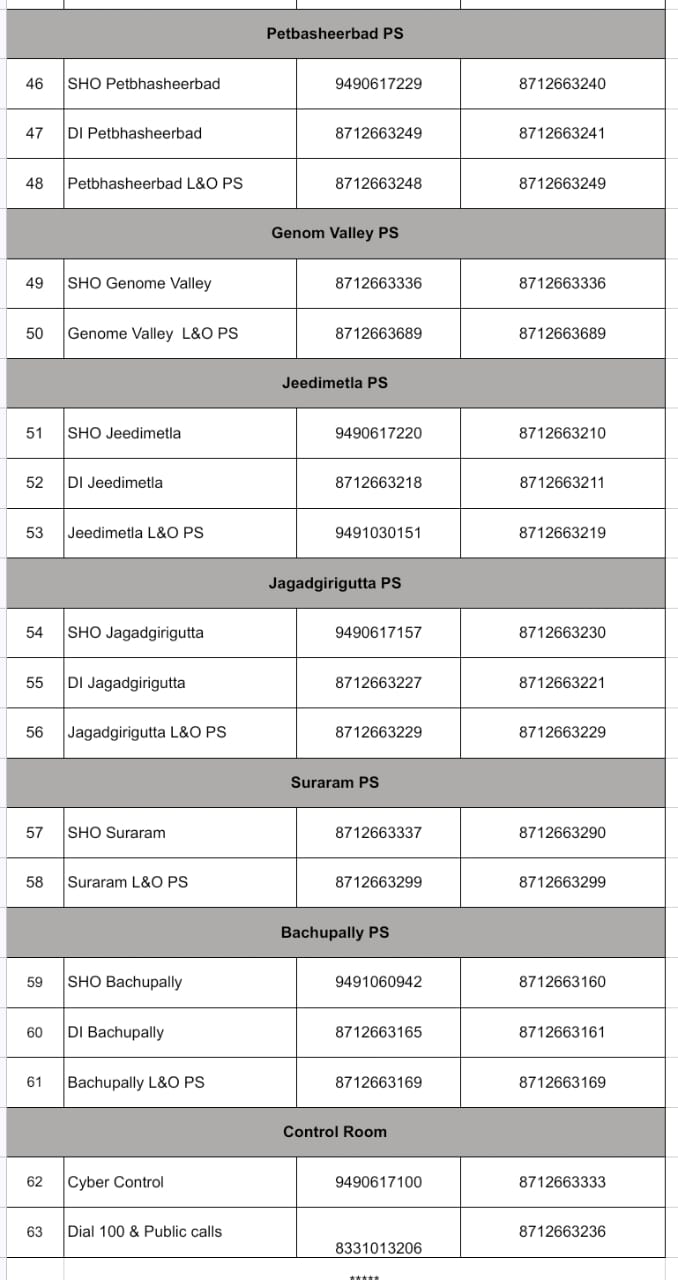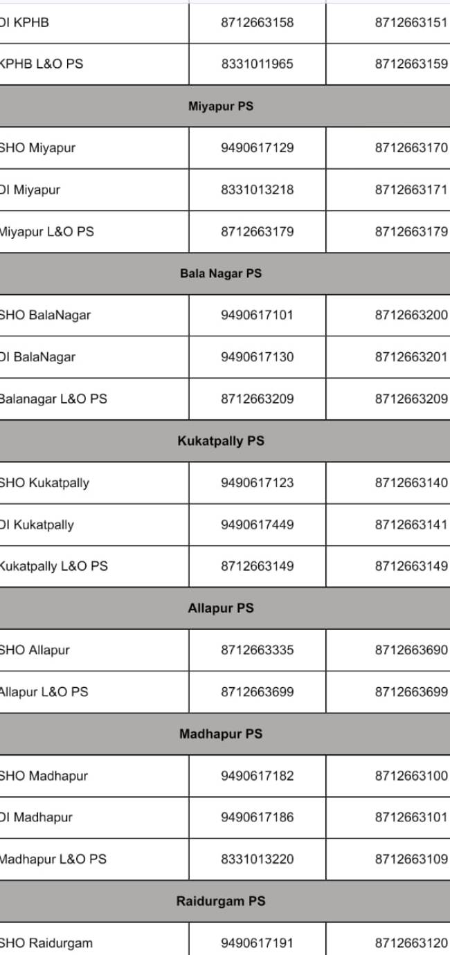 • డీసీపీ సీఏఆర్ హెడ్ క్వార్టర్స్ సైబరాబాద్ – 8712663033