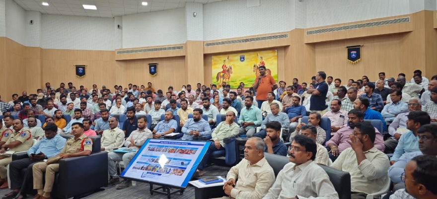 నిర్మాణ రంగంలో పనిచేసే కార్మికుల భద్రతకు పెద్ద పీట వేస్తూ, వారి రక్షణే లక్ష్యం అని సైబరాబాద్ సీపీ డా. ఎం. రమేష్ తెలిపారు. భవన నిర్మాణ కార్మికుల సంక్షేమం, భద్రత, భీమాపై అవగాహన కల్పించేందుకు సైబరాబాద్ పోలీస్ కమిషనరేట్ కార్యాలయంలో లేబర్ డిపార్ట్మెంట్, మున్సిపల్ కార్పొరేషన్, ప్రావిడెంట్ ఫండ్ అధికారులతో సమన్వయ సమావేశం నిర్వహించి, కార్మికుల చట్టపరమైన హక్కులు, ప్రభుత్వ పథకాలు, ఇన్సూరెన్స్ ప్రయోజనాలపై మంగళవారం ప్రత్యేక కార్యక్రమం నిర్వహించారు. ఈ సదస్సులో కొల్లూరు, నార్సింగి, గచ్చిబౌలి ప్రాంతాలకు చెందిన నిర్మాణ కార్మికుల ప్రతినిధి లు పాల్గొన్నారు.